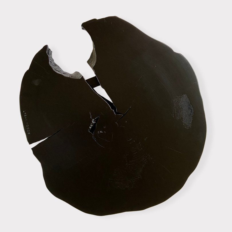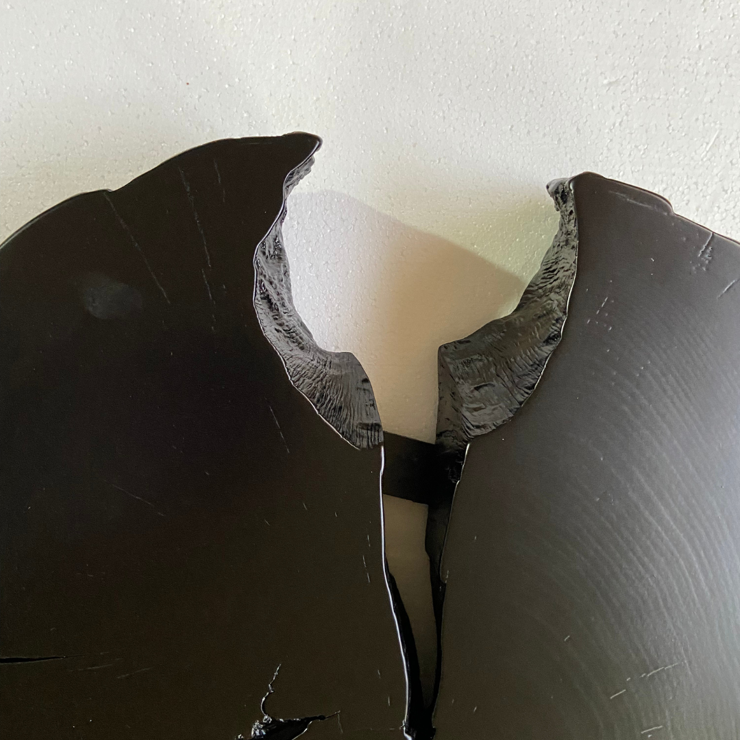 O masa de cafea unicat, realizata din sectiunea unui trunchi de molid vopsit negru