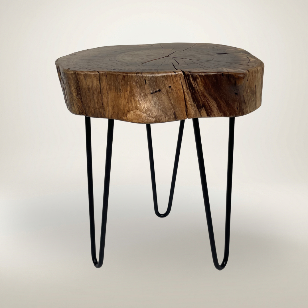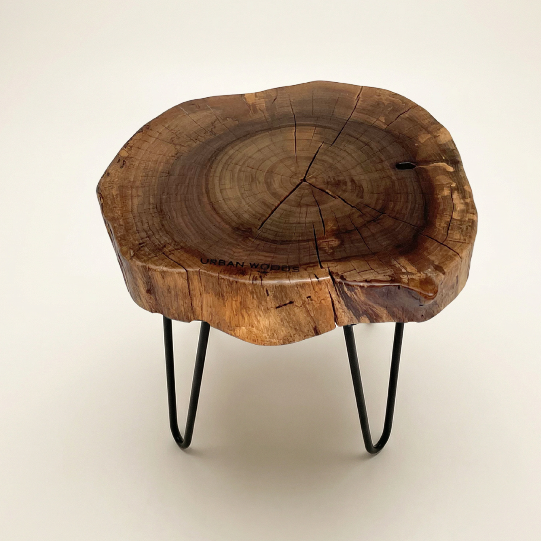 O masa de cafea unicat, realizata din sectiunea unui trunchi de stejar.