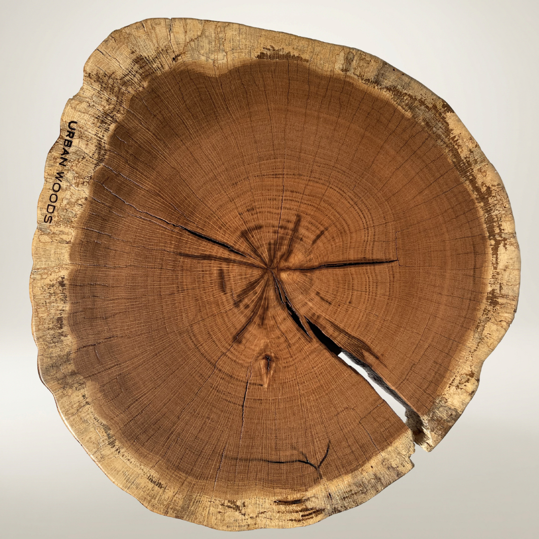 O masa de cafea unicat, realizata din sectiunea unui trunchi de stejar.