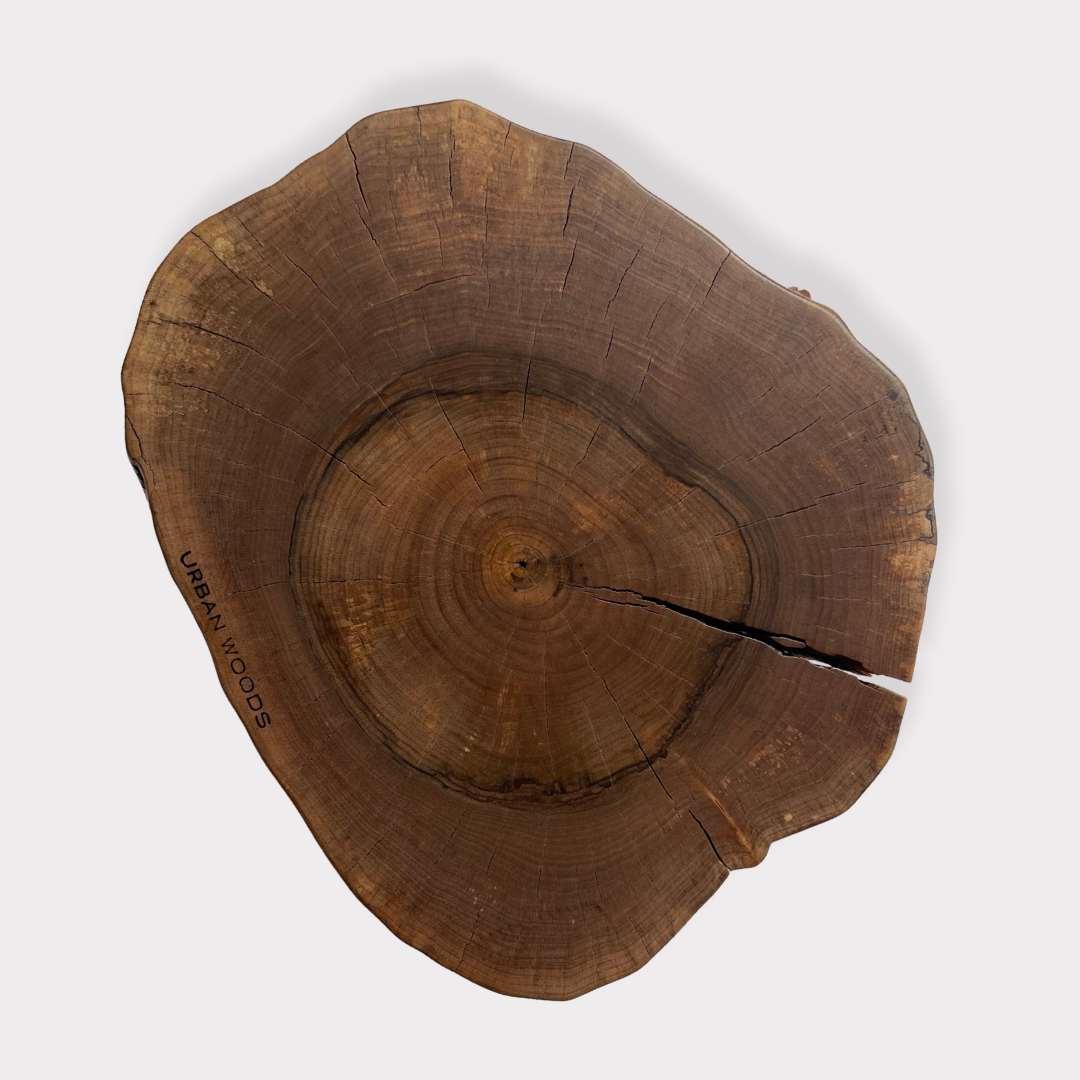 O masa de cafea unicat, realizata din sectiunea unui trunchi de nuc.