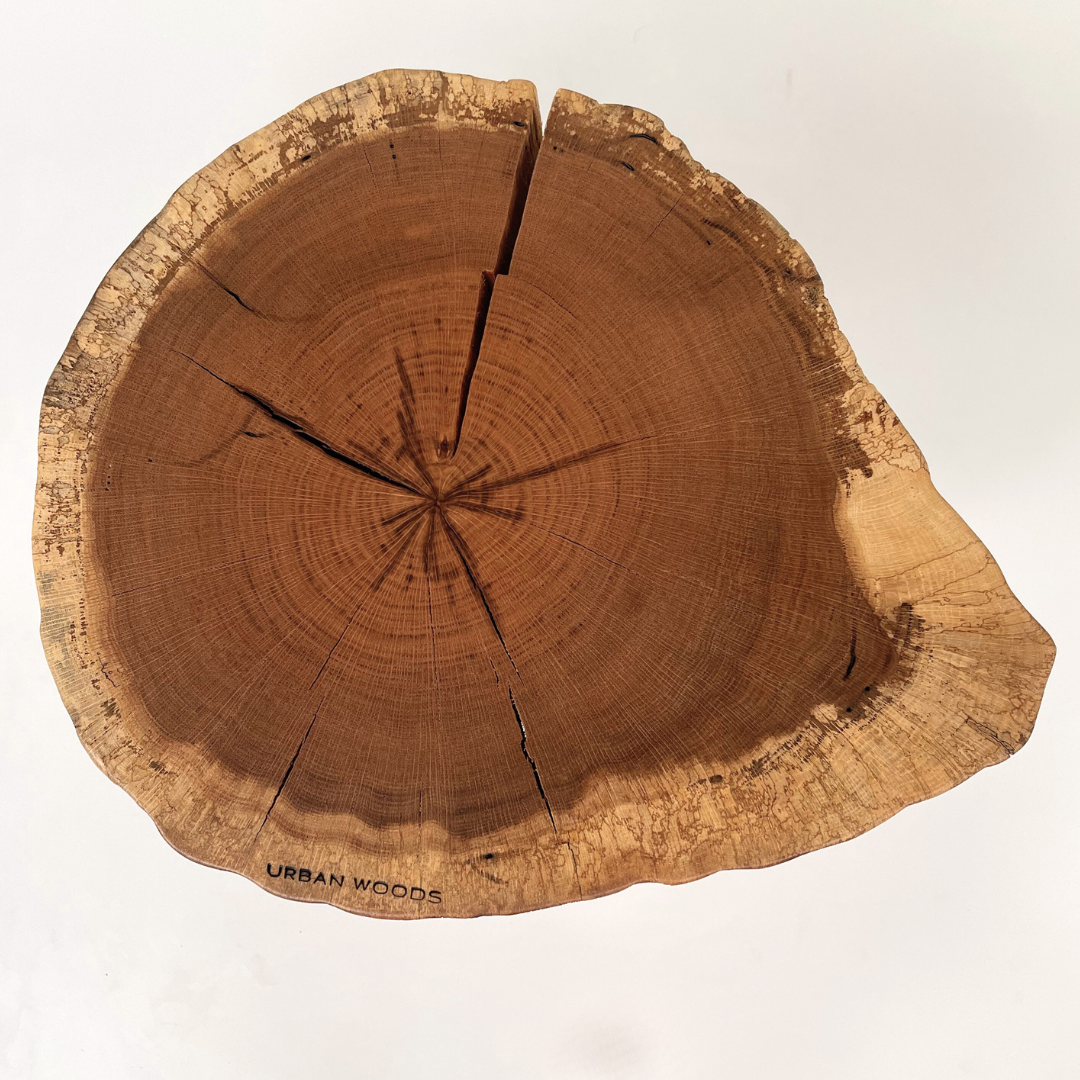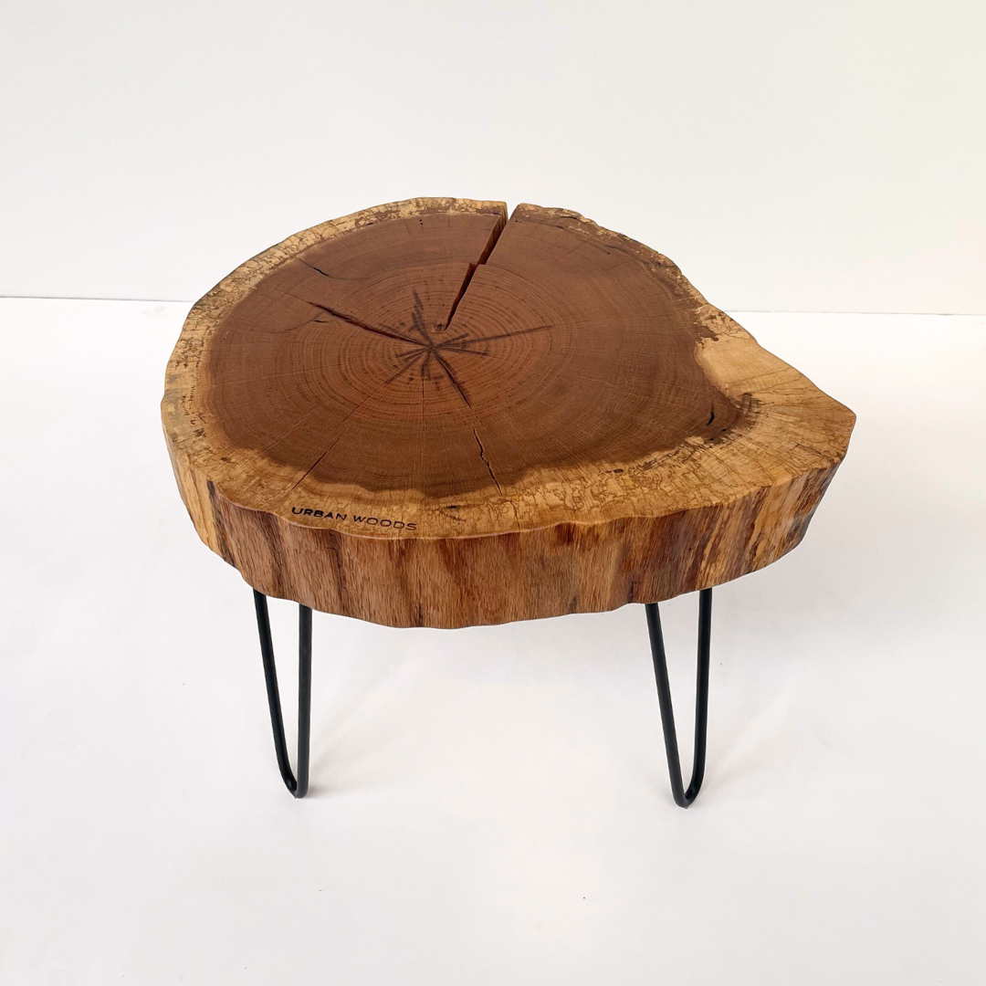 O masa de cafea unicat, realizata din sectiunea unui trunchi de stejar.